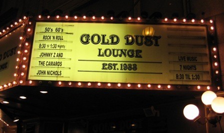 For the most part it was your typical Friday evening crowd, relieved another workweek was over and looking forward to the long Labor Day weekend. We sat in silence and enjoyed the music, the people-watching and the booze. And in a place like the Gold Dust Lounge, you know that deep inspirational toilet graffiti is not far. The best of the ladies’ room, in blue ballpoint on the inside of the door: “We’re all here because we’re not all there.”