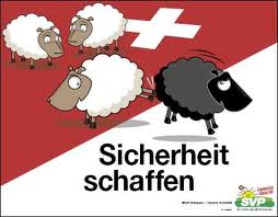 So this to me says that anyone who is a not a white sheep will ostracized from society and don’t let the door hit you in the ass on your way out. This placard is only slightly more insulting than last year’s advertisement for the referendum banning the building of minarets. This was also approved, a year ago exactly, to the incredulity of the rest of the world. (FYI – there are exactly four minarets in the entire country. That’s about half of the number on the poster.)